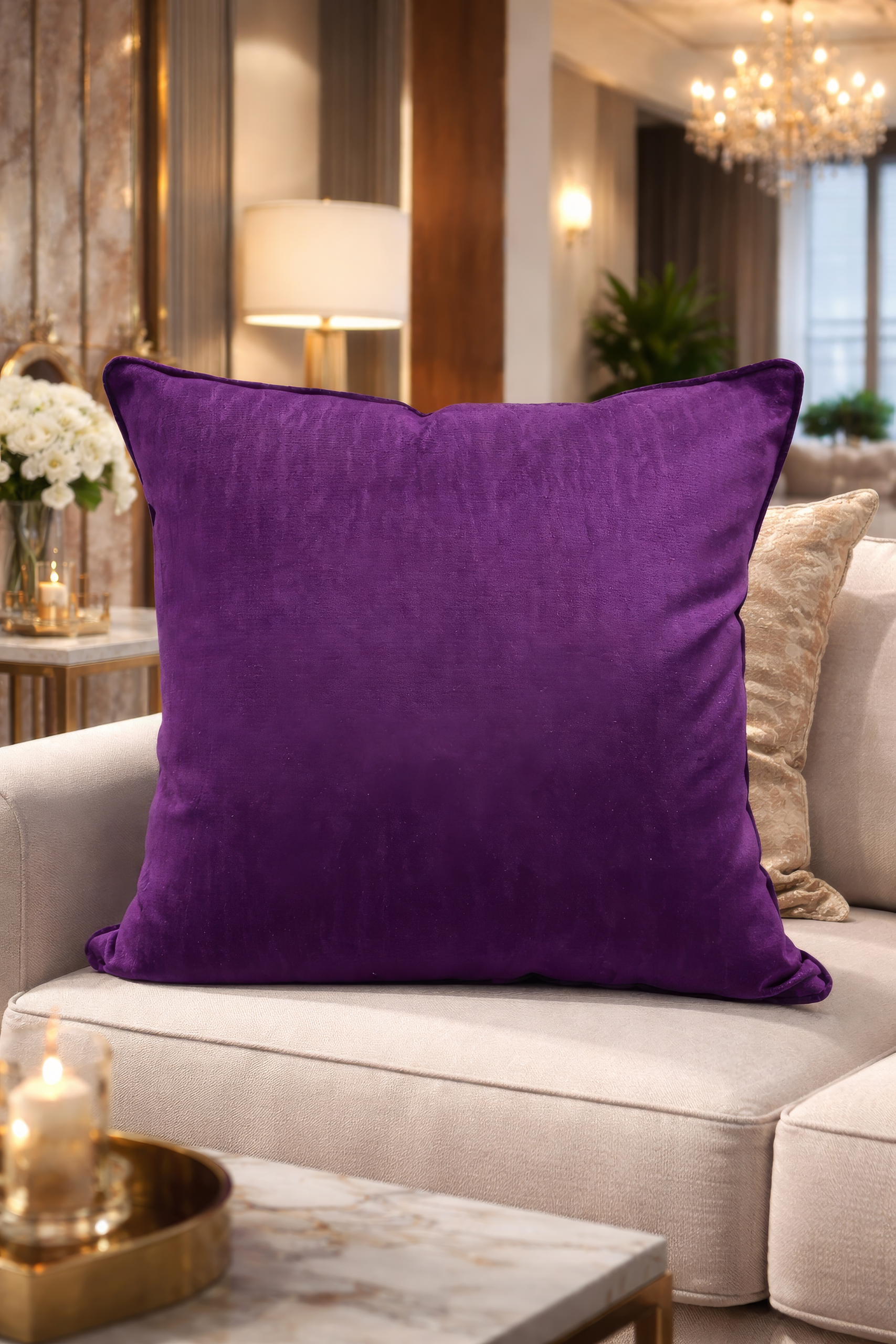 Affirmez le caractère de votre intérieur avec ce coussin décoratif en velours marbré à la teinte violette profonde et sophistiquée. Sa texture subtilement nuancée offre un effet marbré élégant, tandis que la richesse de la couleur apporte une touche de luxe et de modernité. Doux au toucher et généreusement moelleux, ce coussin sublime un canapé, un fauteuil ou un lit en créant un point focal raffiné. Idéal pour une décoration chic, contemporaine ou glamour, il transforme instantanément l’ambiance de votre espace avec élégance.